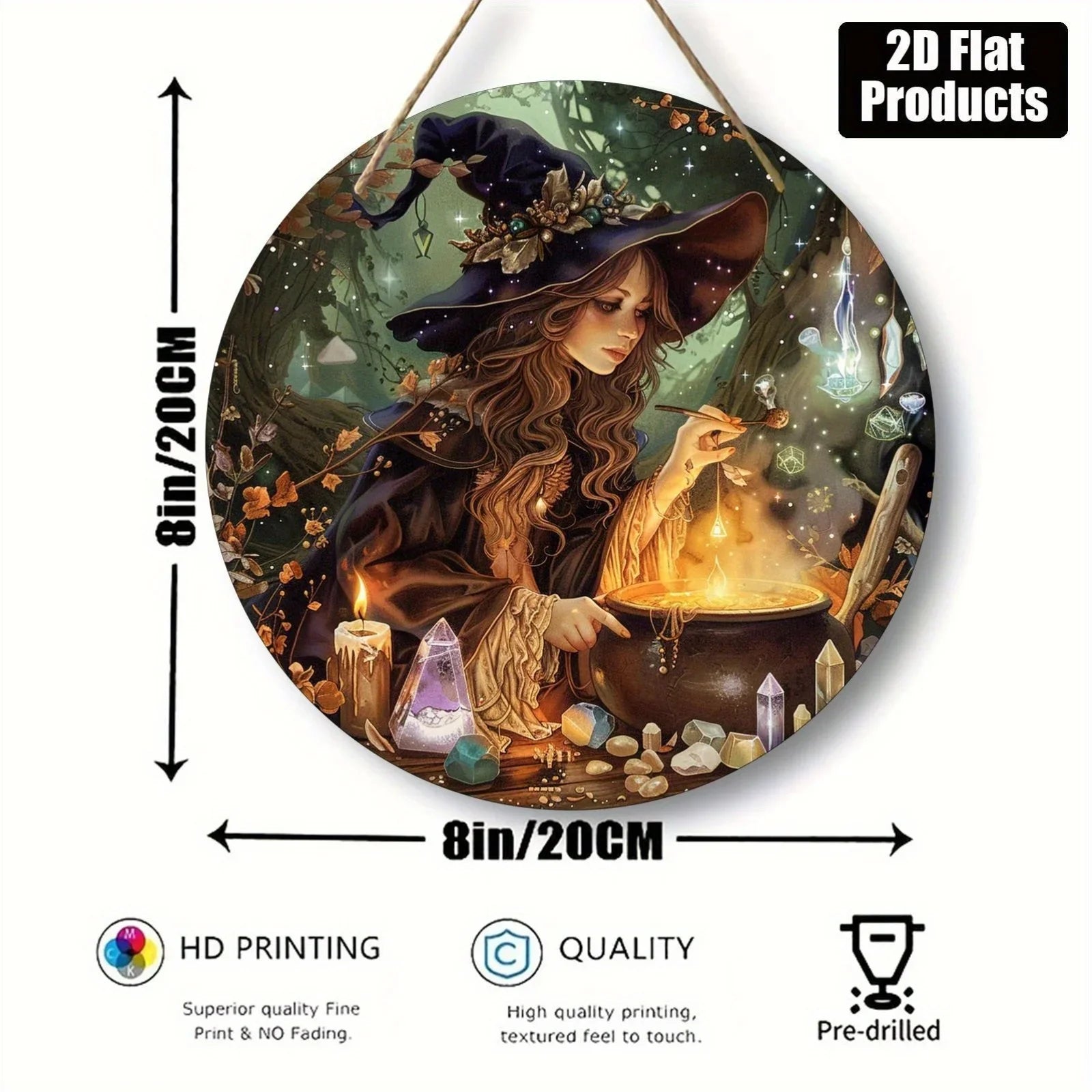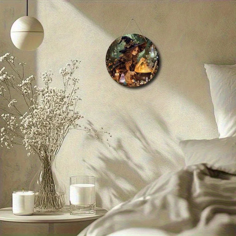 Invite enchantment into your sanctuary with this Witch Theme Round Wooden Sign, a delicate emblem of your mystical lifestyle. Crafted from natural wood, this 20.32 x 20.32 cm wall mural features a 2D printed design that evokes the ancient whispers of witchcraft and bohemian charm.