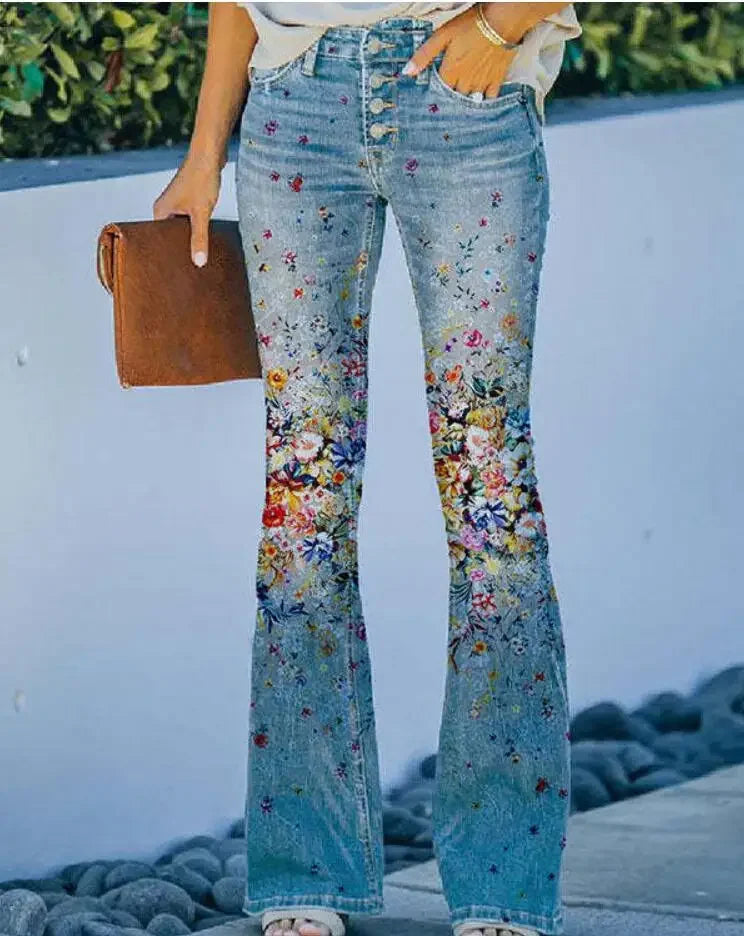 Step into a realm where comfort meets enchanting style with our Plus Size Women's Bell Bottom Pants. Each pair is adorned with a delicate art floral pattern that whispers of moonlit gardens and bohemian dreams, perfect for those who embrace witchcore fashion and fantasy-inspired aesthetics.
