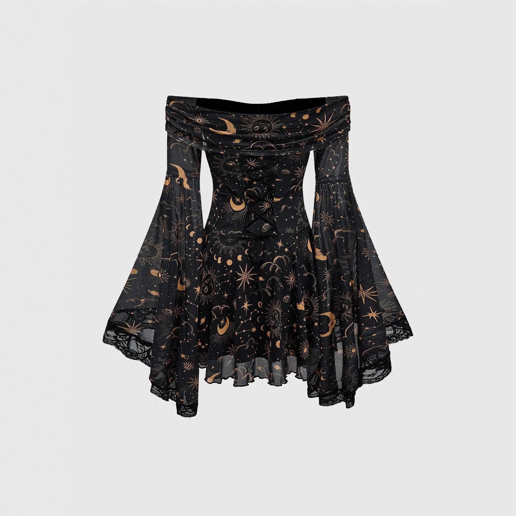 Embrace the cosmic allure of our Gothic Vintage Midi Dress