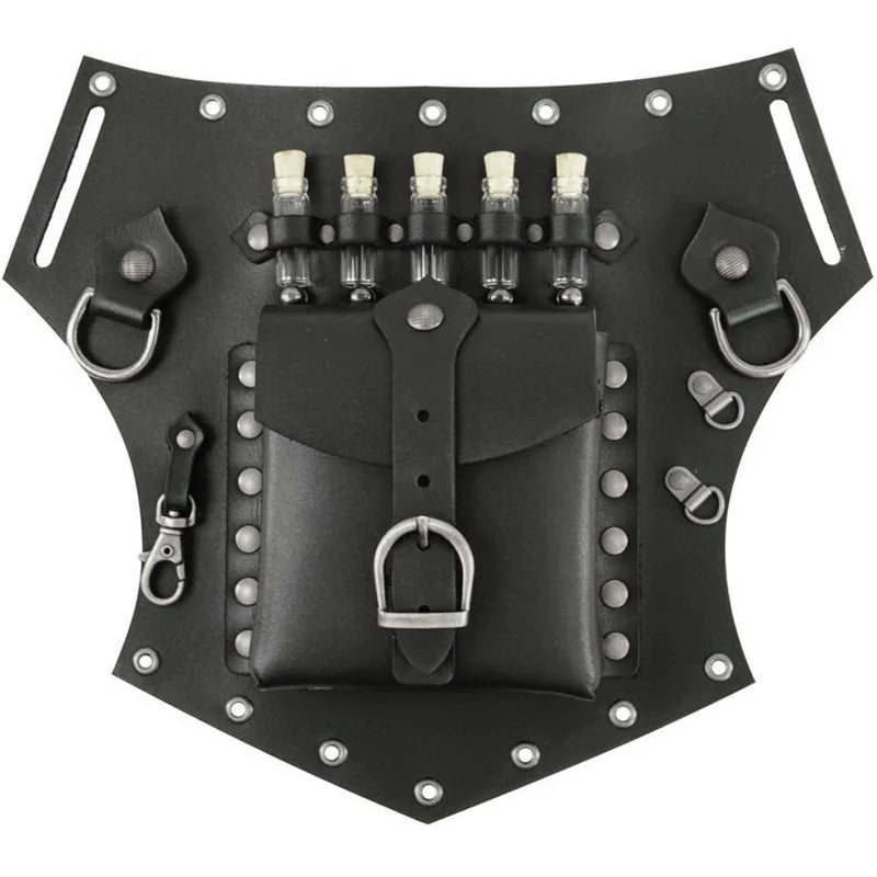Perfectly sized to fit belts up to 2 inches wide, this pouch offers a snug home for your essential potion bottles, vials, or treasured trinkets. The compact design—approximately 10 inches wide by 11 inches tall with a 1.25-inch depth—keeps your magical tools close at hand while maintaining effortless style.