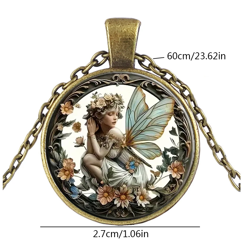 Collar vintage con colgante de cúpula de cristal, diseño de mariposa y hada, con flores y ángel, para mujeres y niñas, joyería, regalos.