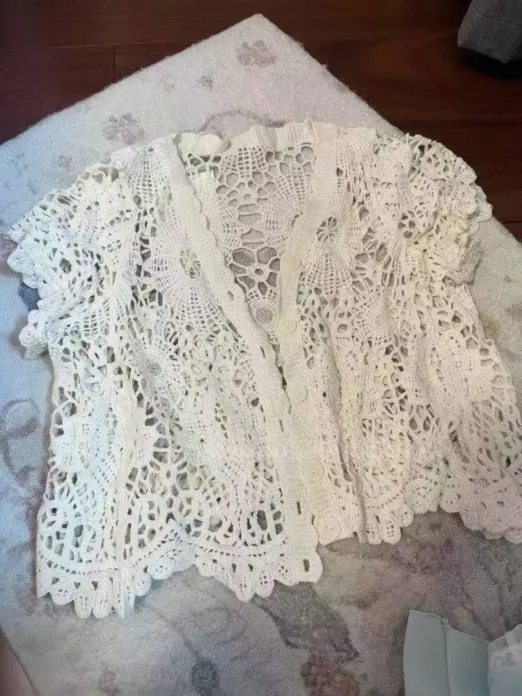 - Short Cardigan: Lightweight and cozy, perfect for layering; its slim silhouette and notched collar add a touch of vintage charm, keeping you effortlessly chic through all seasons.