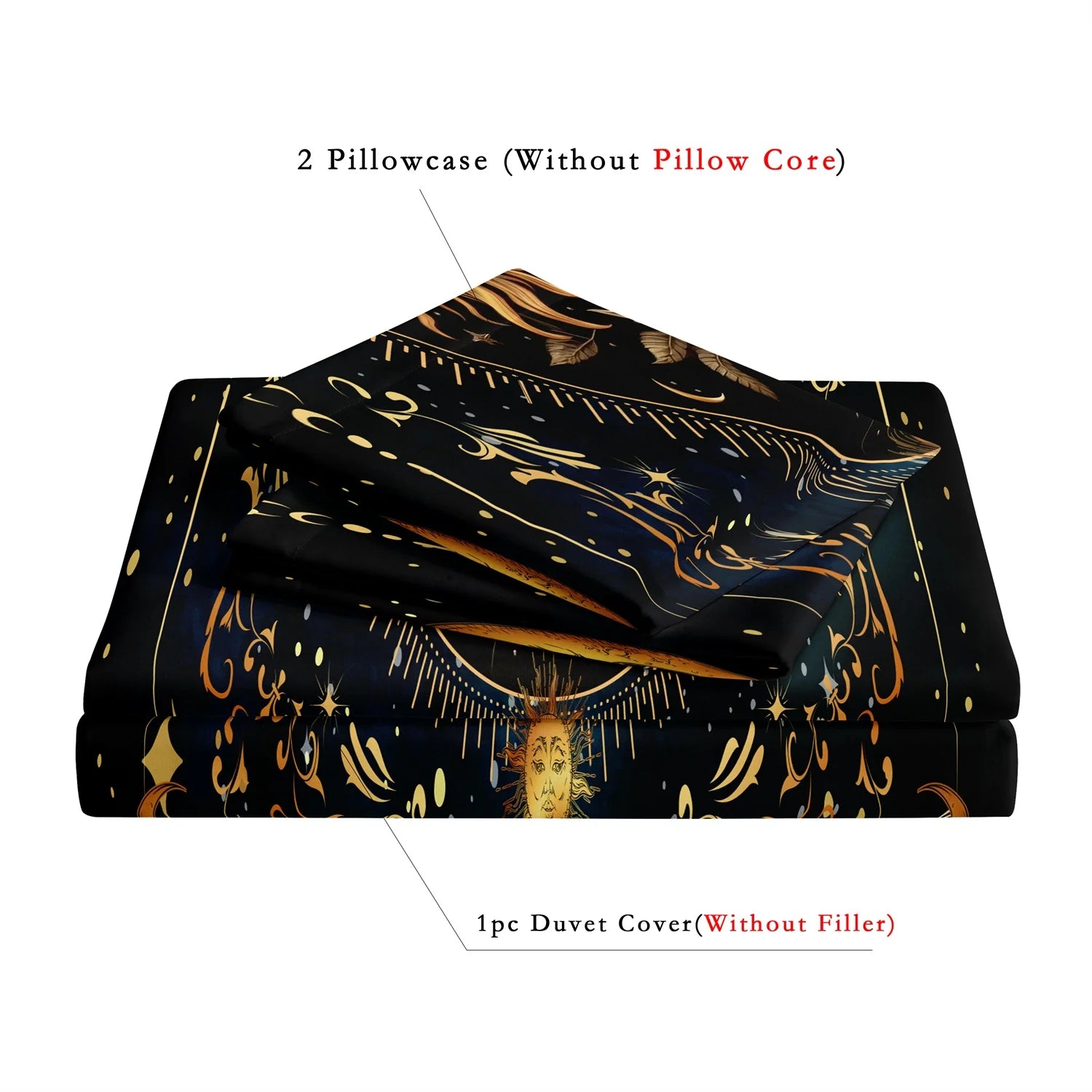 Transform your sanctuary into a cosmic haven with this 3-piece duvet cover set, where celestial artistry meets everyday comfort. Crafted for those who cherish the mystique of witchcore and bohemian aesthetics, this set envelops you in soft, breathable polyester fabric featuring high-definition prints of golden suns and moons—invoking warmth and wonder every night.