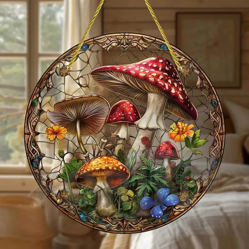 Transform your window into a portal of light and magic with this round stained translucent acrylic mushroom suncatcher. Crafted from durable acrylic, it captures sunlight and splashes your room with whimsical colors and gentle glow, perfectly complementing your witchcore, bohemian, or gothic aesthetic.