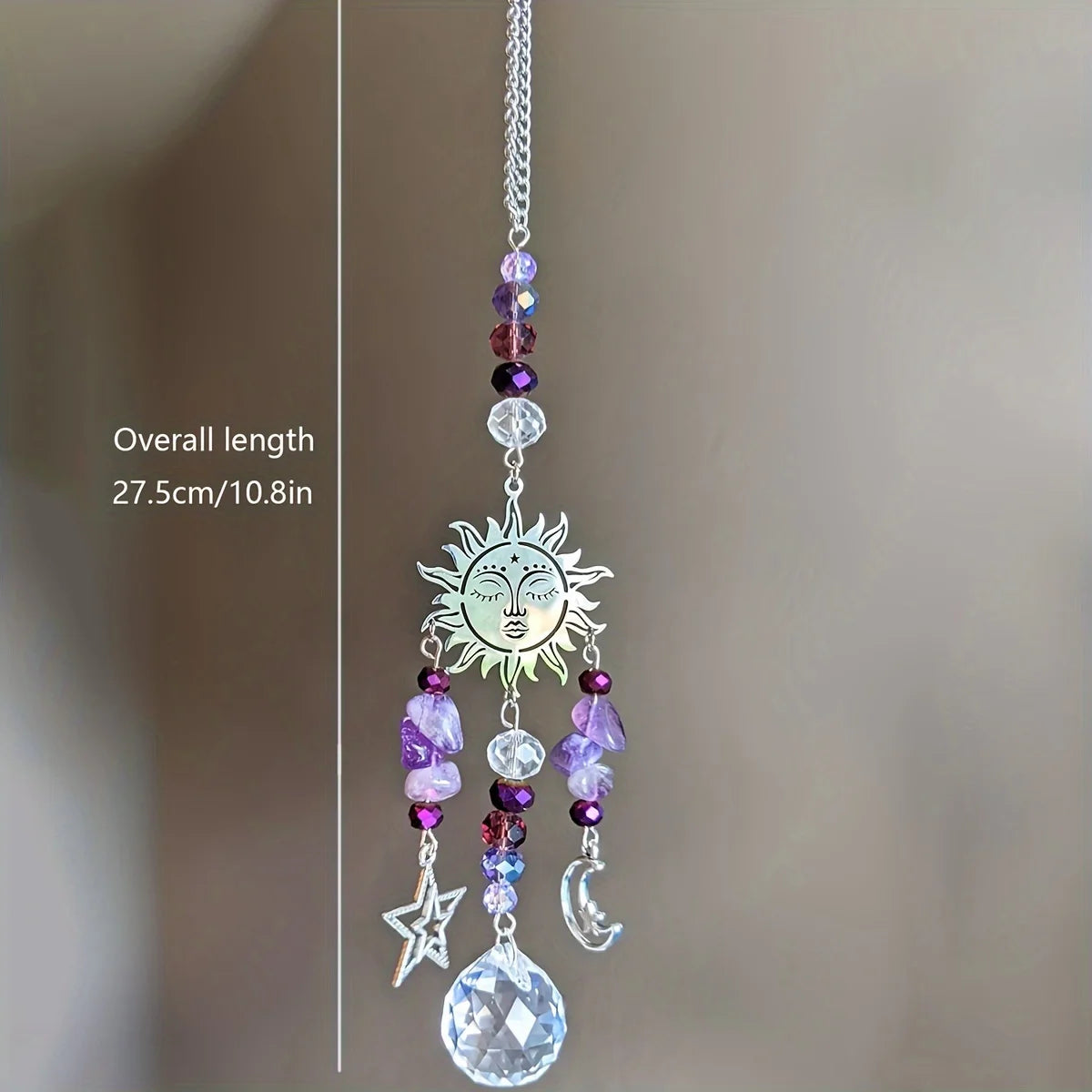 Perfect for those who cherish witchcore fashion and bohemian home decor, this hanging decoration blends vintage mystical allure with modern artistry. Whether gracing your window during festive celebrations or enhancing everyday moments, it invites tranquility and cosmic energy into your surroundings.