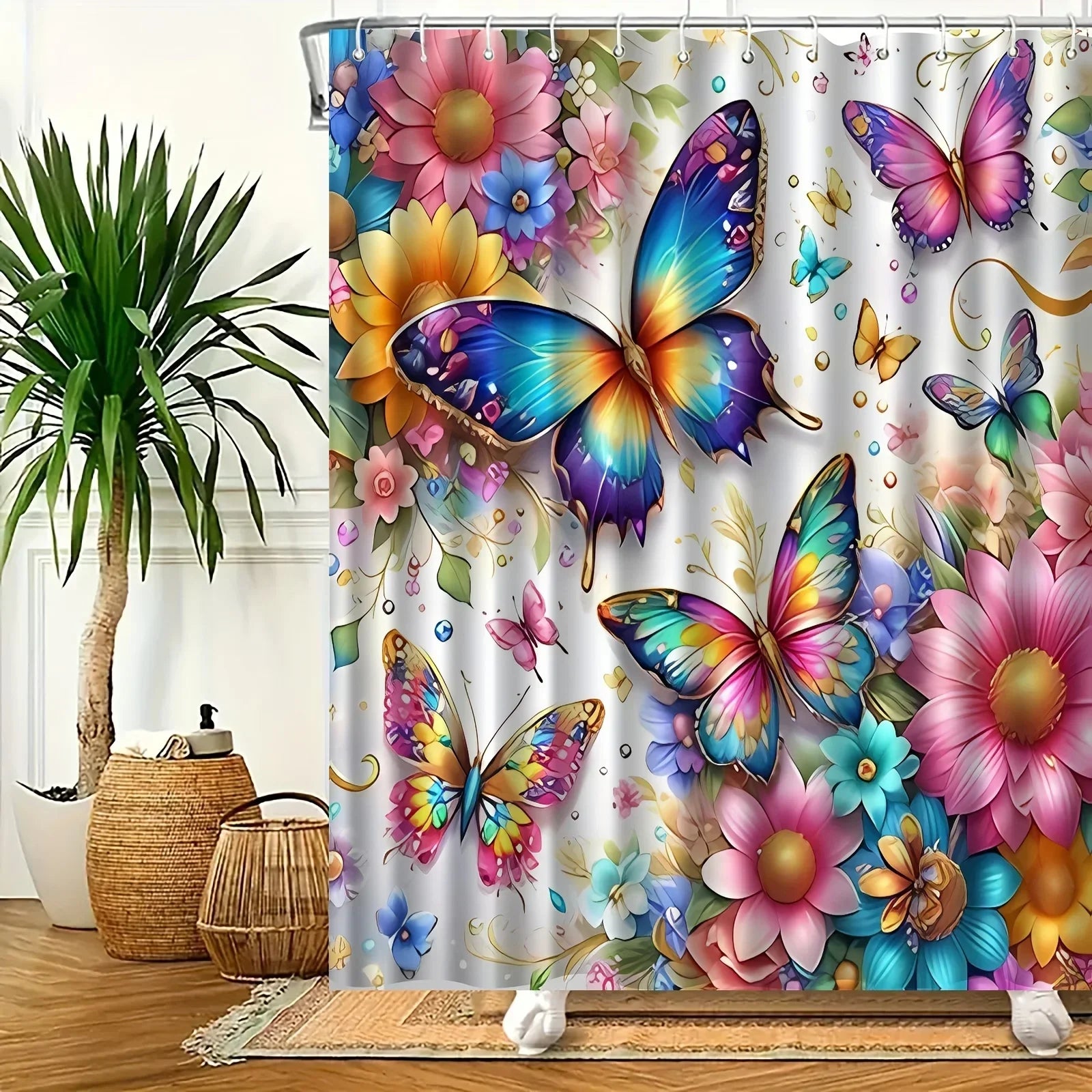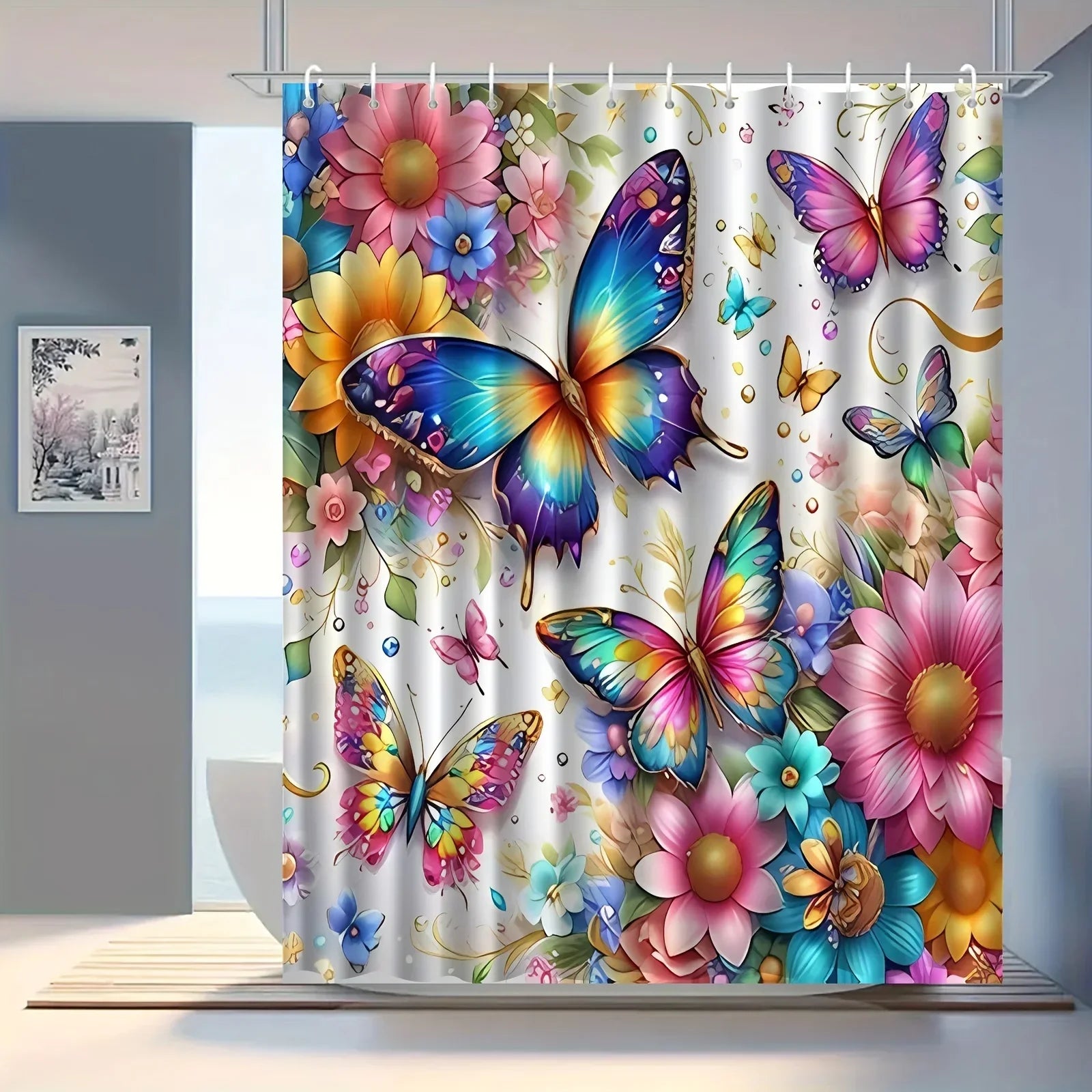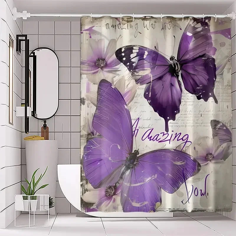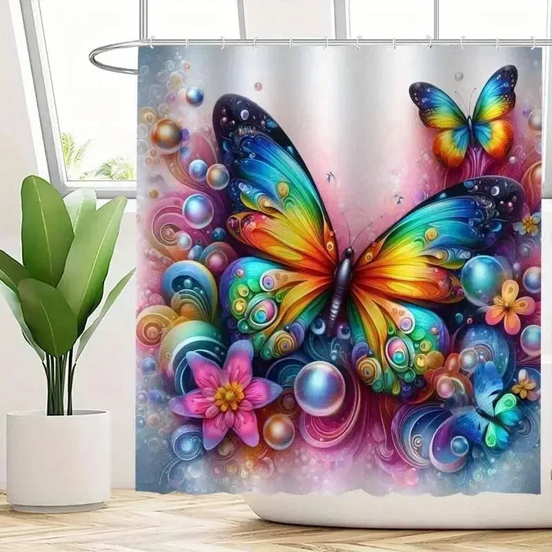 Envelop your space in the gentle flutter of butterfly wings with our Butterfly Print Shower Curtain from Witchy Way Wares. Crafted from durable polyester fabric, this curtain gracefully partitions your bathtub while infusing your family bathroom with an enchanting bohemian charm.