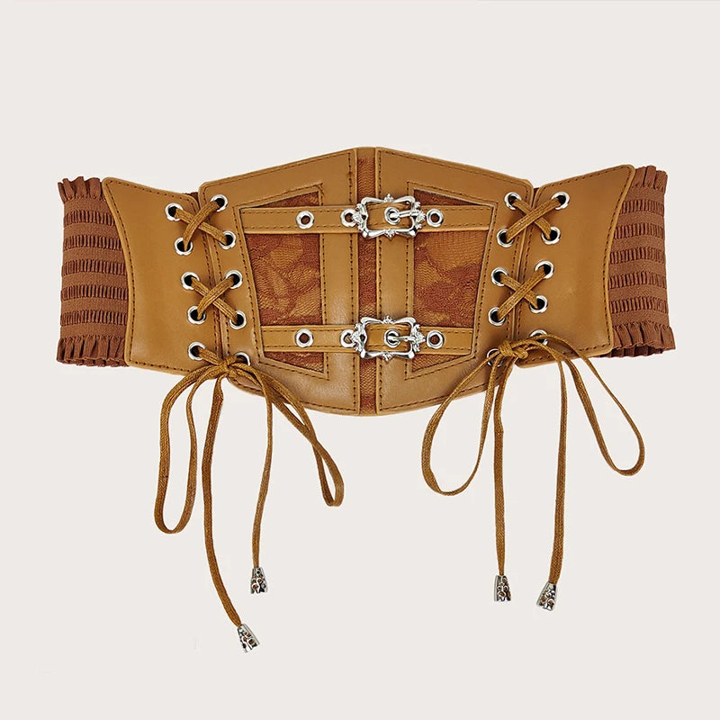 Elastic Plus Size Lace Corset Belts for Women Wide Stretch Cummerbunds Female Goth Punk Dress Corset Belt Brown White Waistband