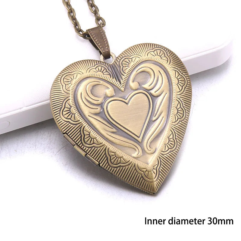 Heart Carved Flower stripe Locket Pendant Necklace