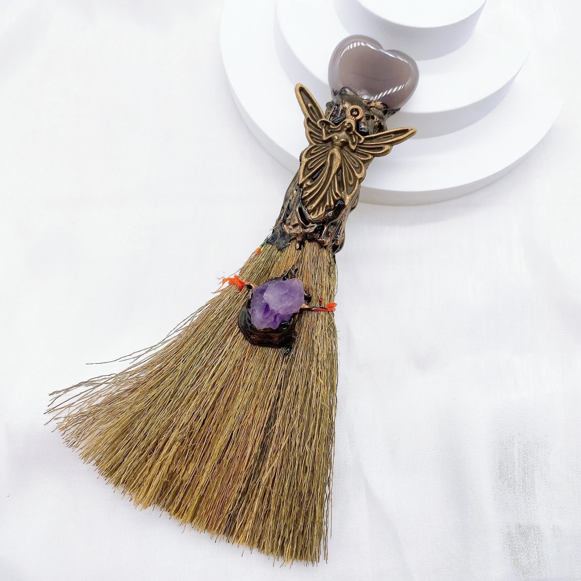Invite the gentle magic of natural amethyst into your home with this handcrafted Love Heart Magic Broom. Each piece captures the soothing energy of raw amethyst crystal, revered for its calming and healing properties, elegantly entwined with a traditional broomstick form—a symbol of sweeping away negativity and inviting positive transformation.