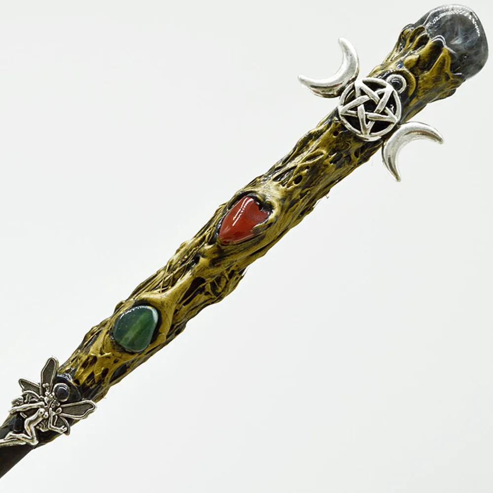 Natural Crystal Wiccan Wand Wood Handmade Unique