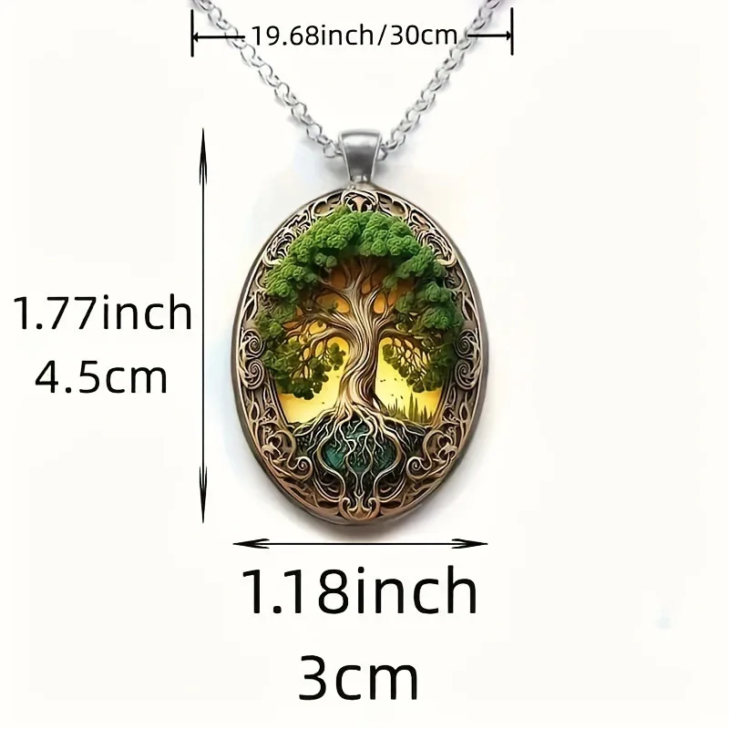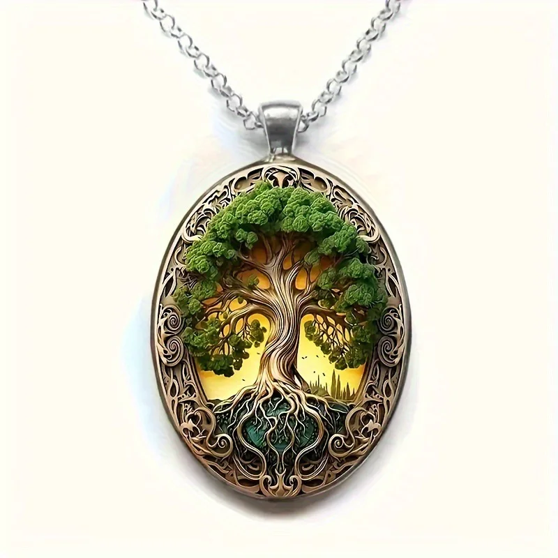 ✨ Discover the Elegance of Our Tree of Life Pattern Elliptical Glass Pendant Necklace! ✨