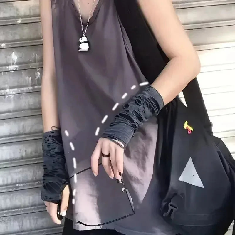 New Hot Sale Fashionable Simple Gothic Fingerless Gloves Unisex Tear Design Stretchy for Party Preparation and Durable