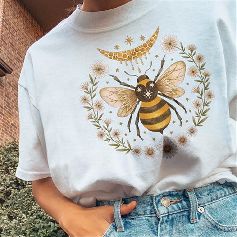 Step into a realm where nature’s charm meets celestial magic with our Women's Fashion Bee Moon Print Casual Short Sleeve T-Shirt. Crafted for creative souls drawn to witchcore fashion and vintage mystical apparel, this tee blends comfort with enchanting style.